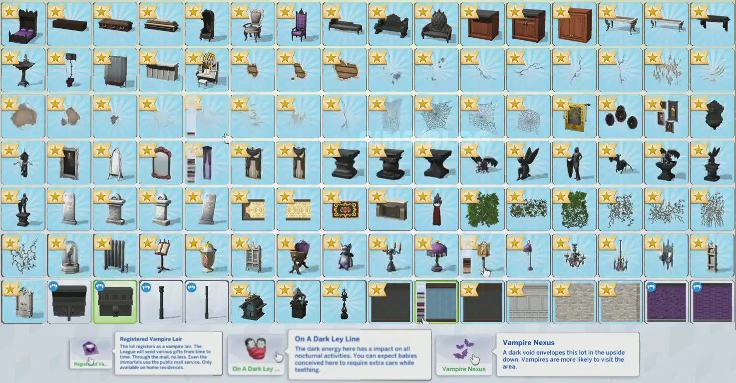 sims-blog.de managed to collect some of the new items they showcased that you can see down below. Please note that not all items from Vampires Game Pack are shown.