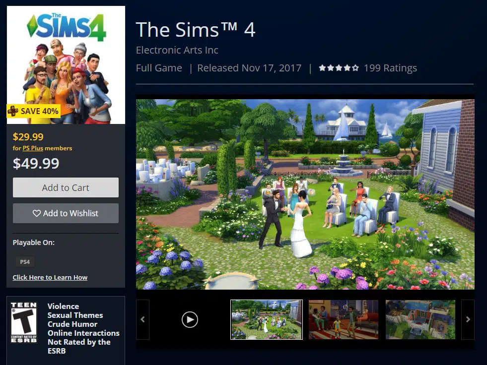 Playstation is currently having a discount for Playstation Plus members where you can save up 40% off on select The Sims 4 games, including: