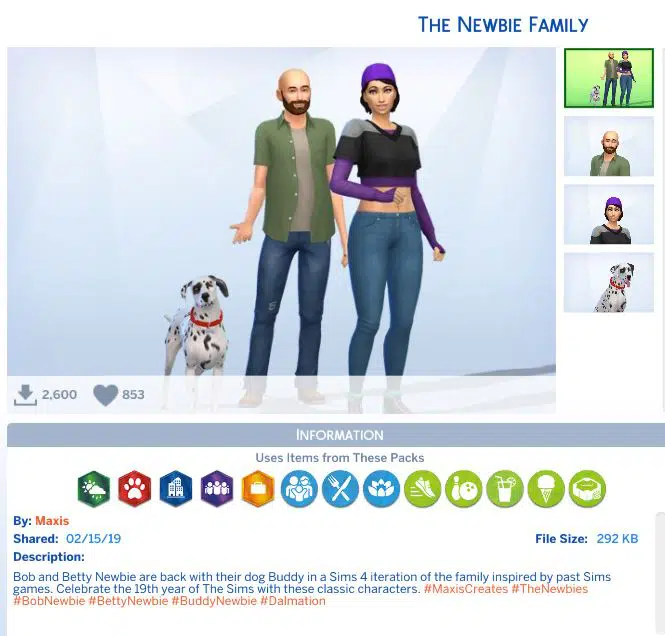 The Sims Team has decided to recreate this family in The Sims 4 in celebration of The Sims’ 19th Anniversary. Unlike the original version of The Newbie Family, this one has an extra addition – Buddy Newbie – a cute Dalmatian that you’ll be able to play with if you own The Sims 4 Cats & Dogs Expansion Pack.