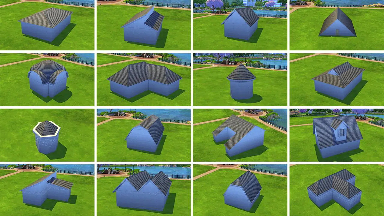 We’re going to give you a rundown of all the different roof pieces and show you 29 different examples of roofs you can create for many different shapes of buildings. We’re also going to show you a few advanced tricks and shortcuts to maximize roof customization.