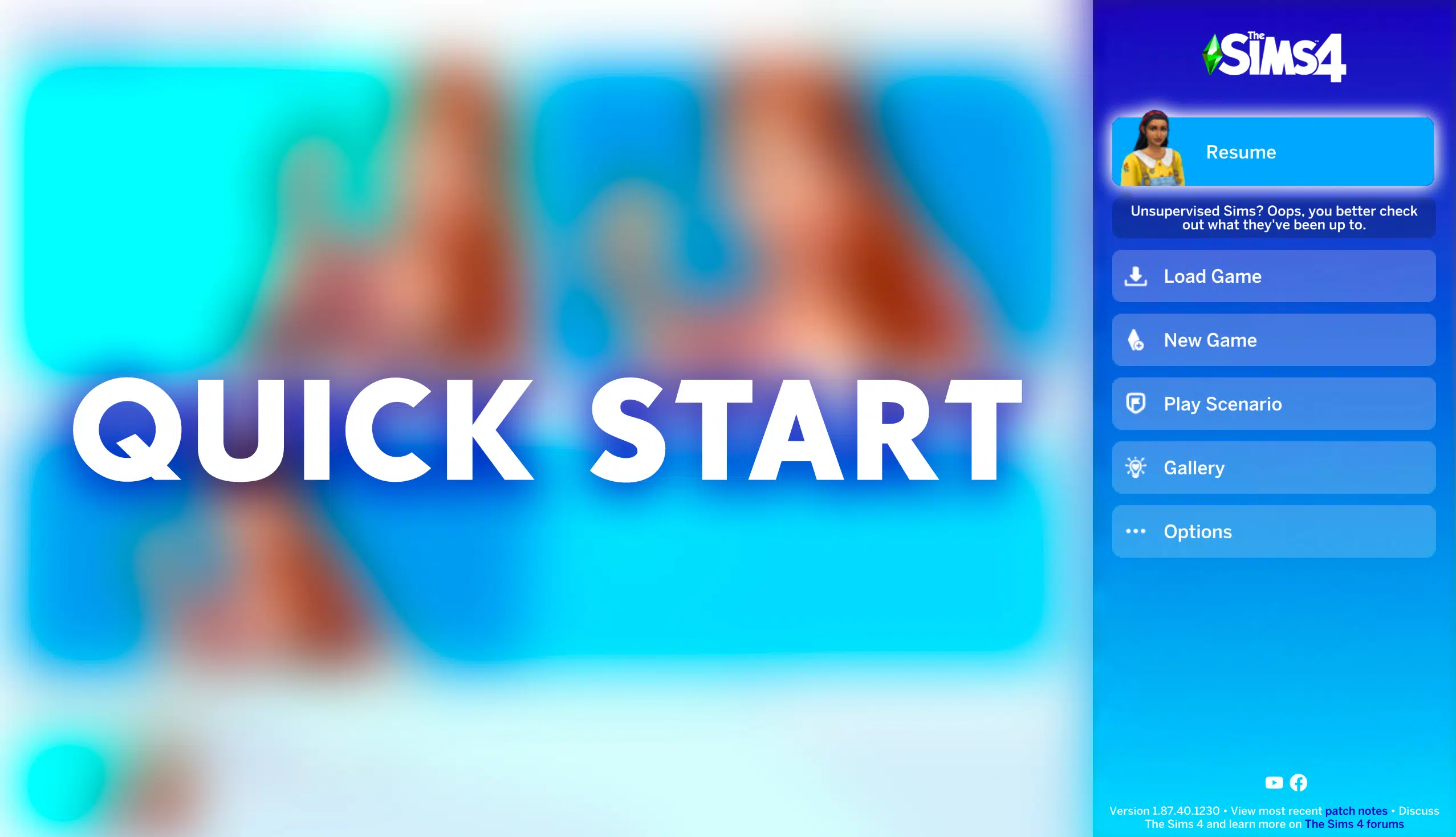 The Resume button lets you jump straight into your last session. This cuts down the extra loading step you get from Loading a Game that loads up Manage Worlds, makes you select your last Household you played and then load up the game again until you’re in Live Mode.