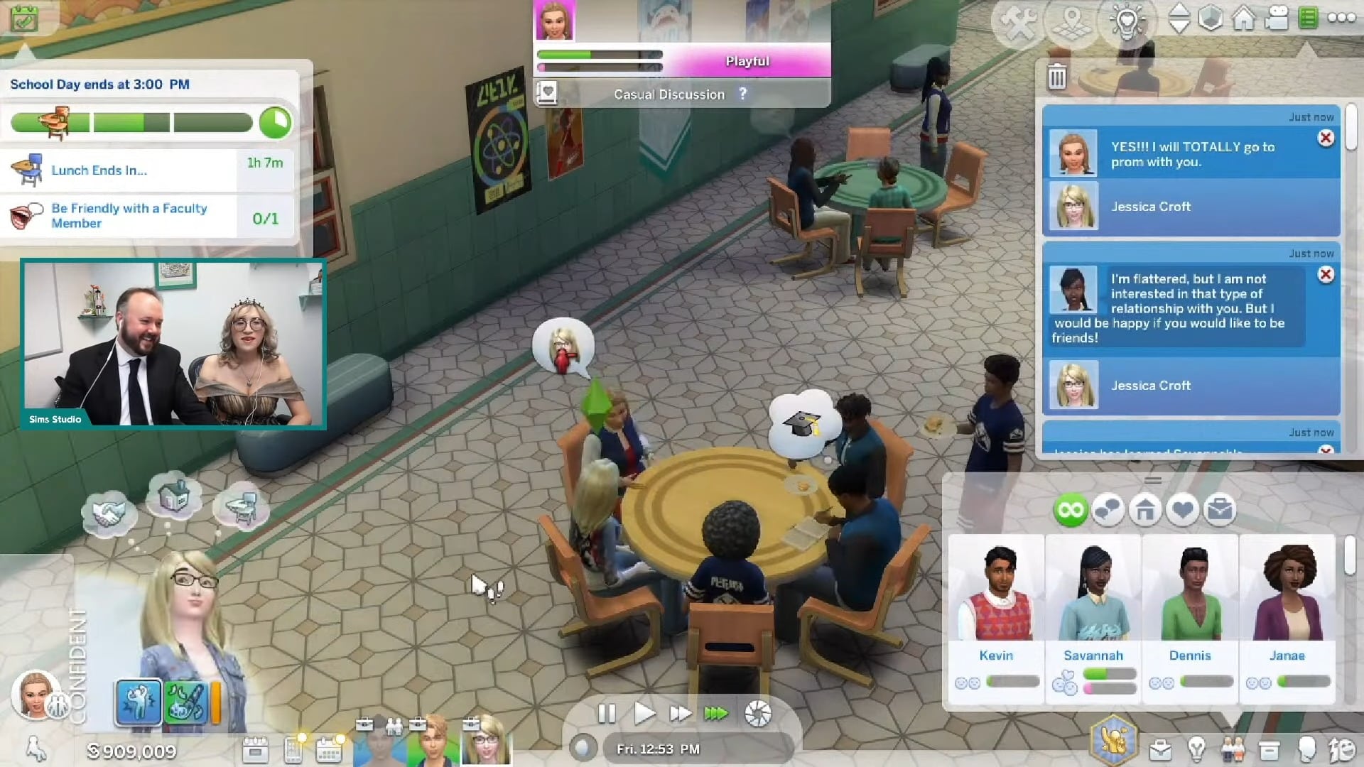 In addition to the traditional romantic date, you now have the option to go to prom as friends. This option is both in the friendly menu and the Prom menu. And if your Sim is turned down after asking a Sim to the prom romantically, you can still ask them to go as friends, too. After they accept, the sims hug. This option will be great for the Socially Awkward sims, sims focusing on their studies, or sims not interested in romantic relationships.
