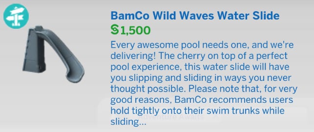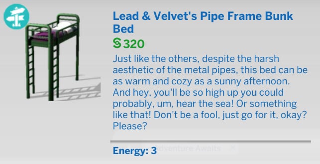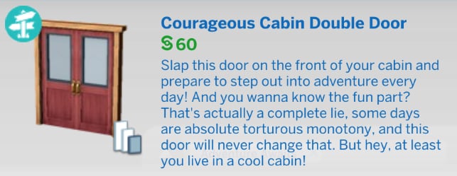 The build style of The Sims 4 Adventure Awaits boils down to two concepts: rustic cabins with mesh doors and canopy-draped windows, and modern, sleek styles perfect for a high-end getaway destination. A major selling point of this pack is its expansive collection of gameplay objects, some of which have been requested since the Base Game’s launch in 2014.