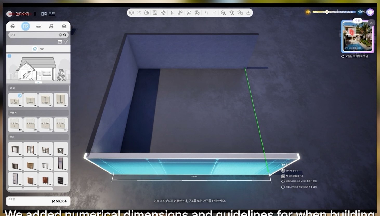 - We added numerical dimensions and guidelines for when building walls in Build Mode.