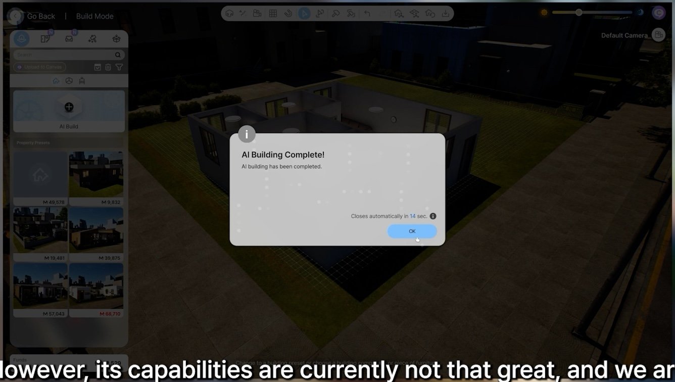 As for AI Building, it often produces results different from the prompts, and since it’s based on an SLM AI, improvement seems difficult — so we’re considering pausing its development. Do you think we still need it as a basic starting tool for building? We’ve also made a few small improvements to the building convenience features.