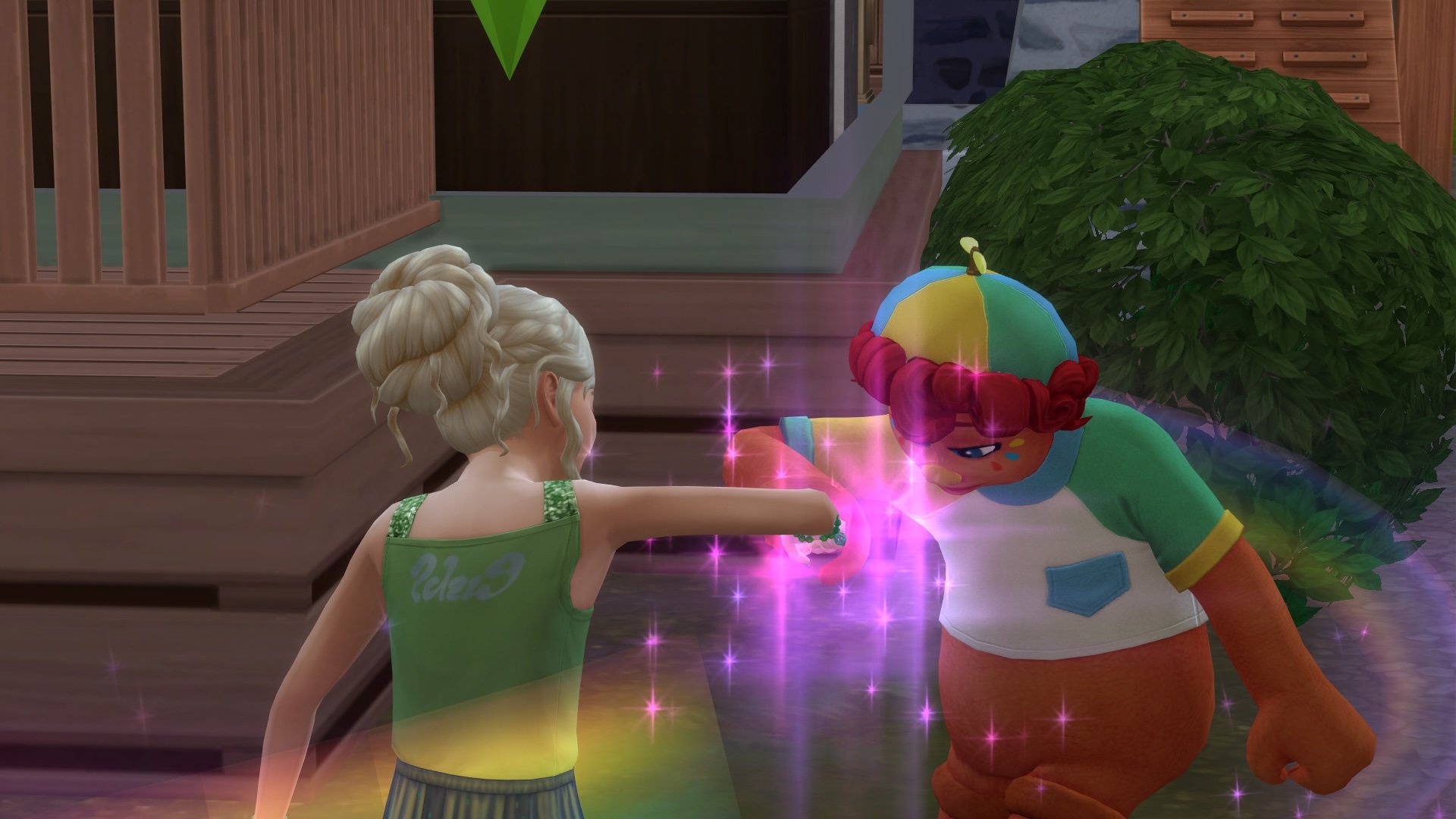 Imaginary Friends will make life fun by suggesting activities to try out and boost your Sim’s mood when they’re down! Your Child Sim can use all of the basic social interactions with their Imaginary Friend, but they will also unlock the following special interactions: