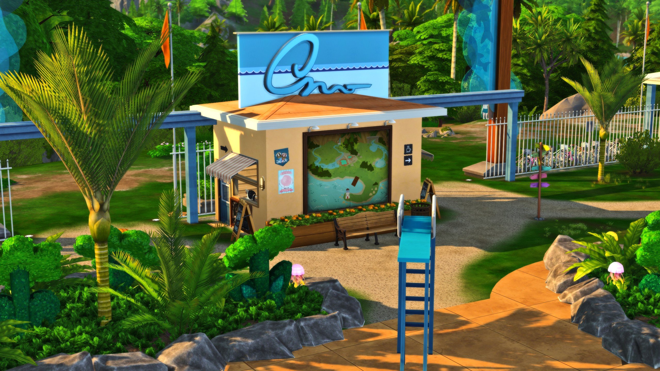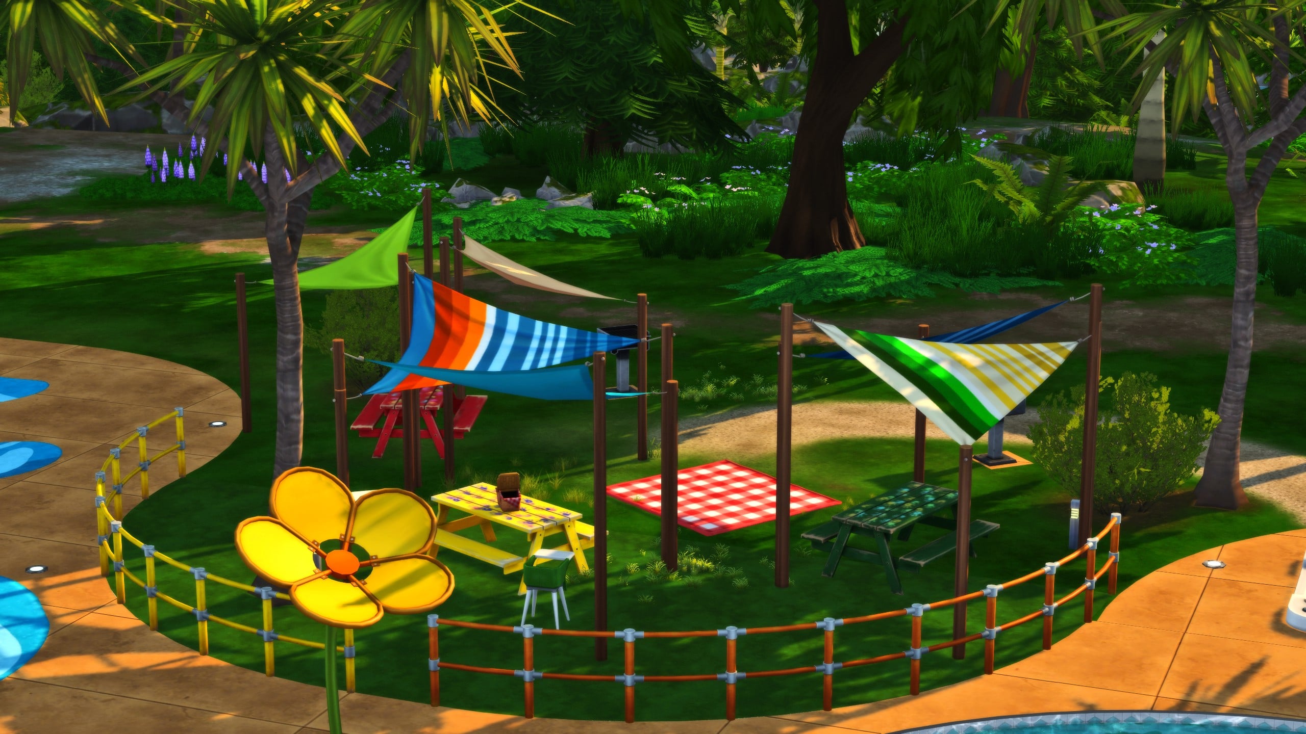 Built on the Hothead Rock Hideaway lot in Gibbi Point, SimCubeez has created a lot with a wide range of activities for sims of all ages! With a picnic area, huge pool, diving boards, and playground equipment, just about any sim can find something to enjoy at Wanderwood Wilds Park!