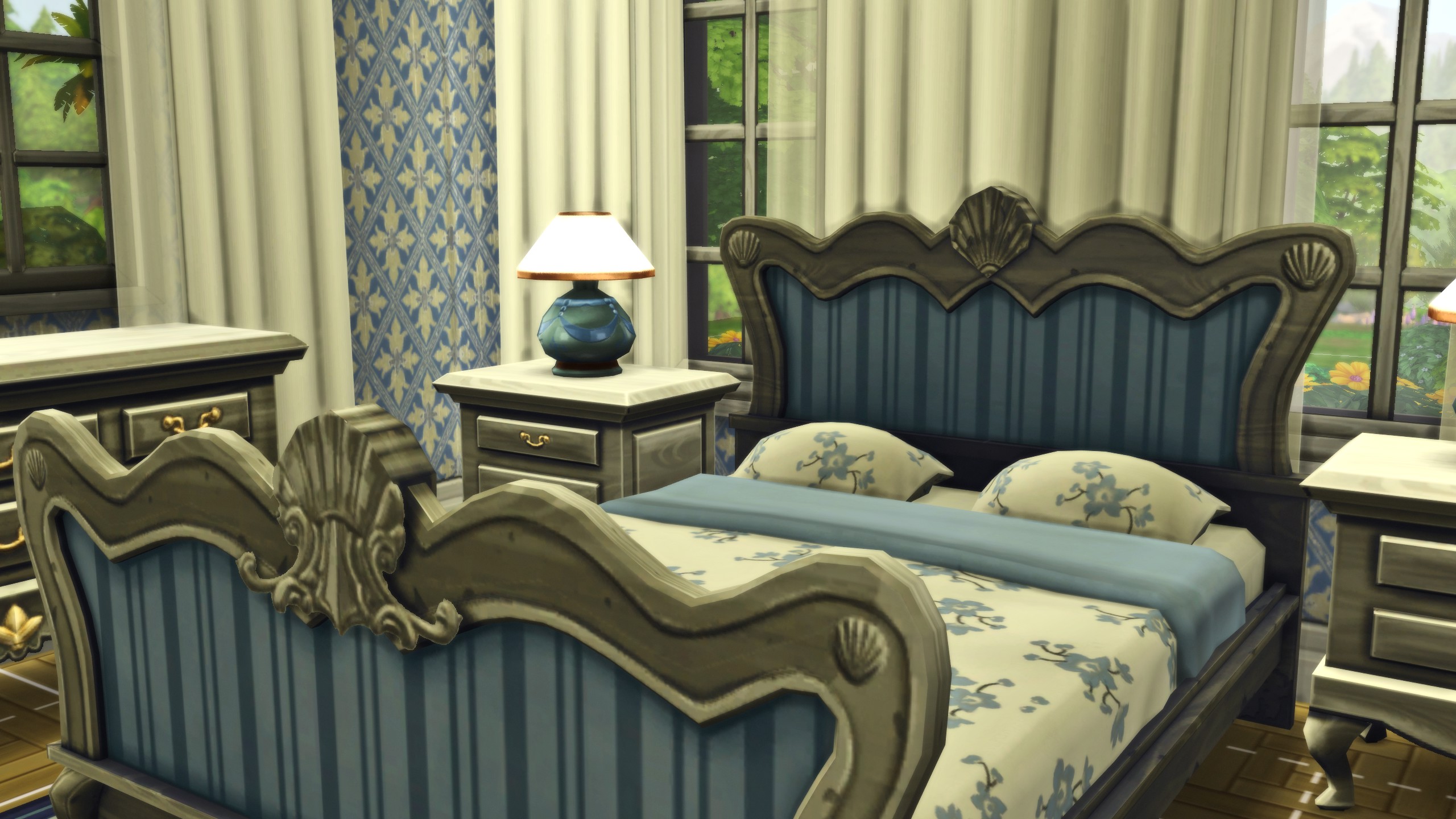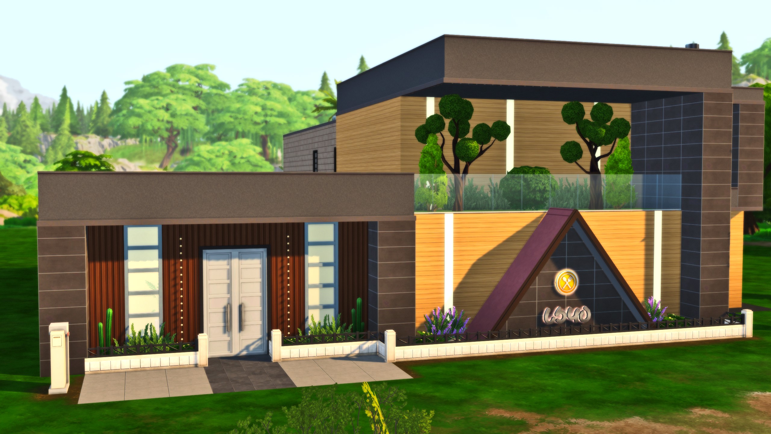 The beautiful water features, both the pool and water under the entrance bride, are perfect centerpieces for this beautiful hotel & spa! With a lavish two entire stories, plus a third smaller space, your sims will feel truly revitalized after a getaway here!