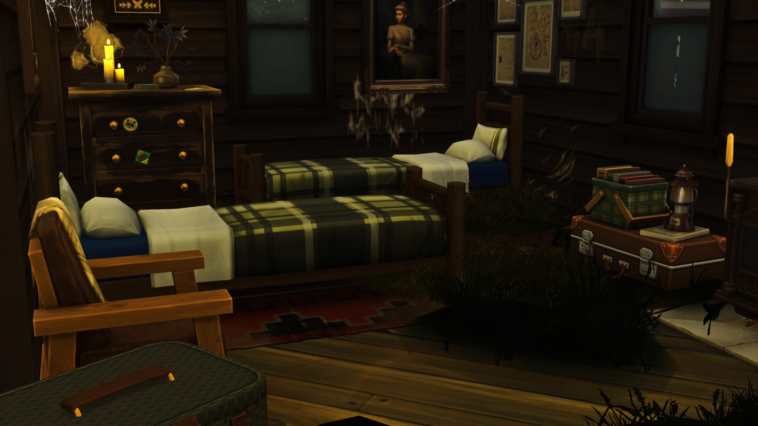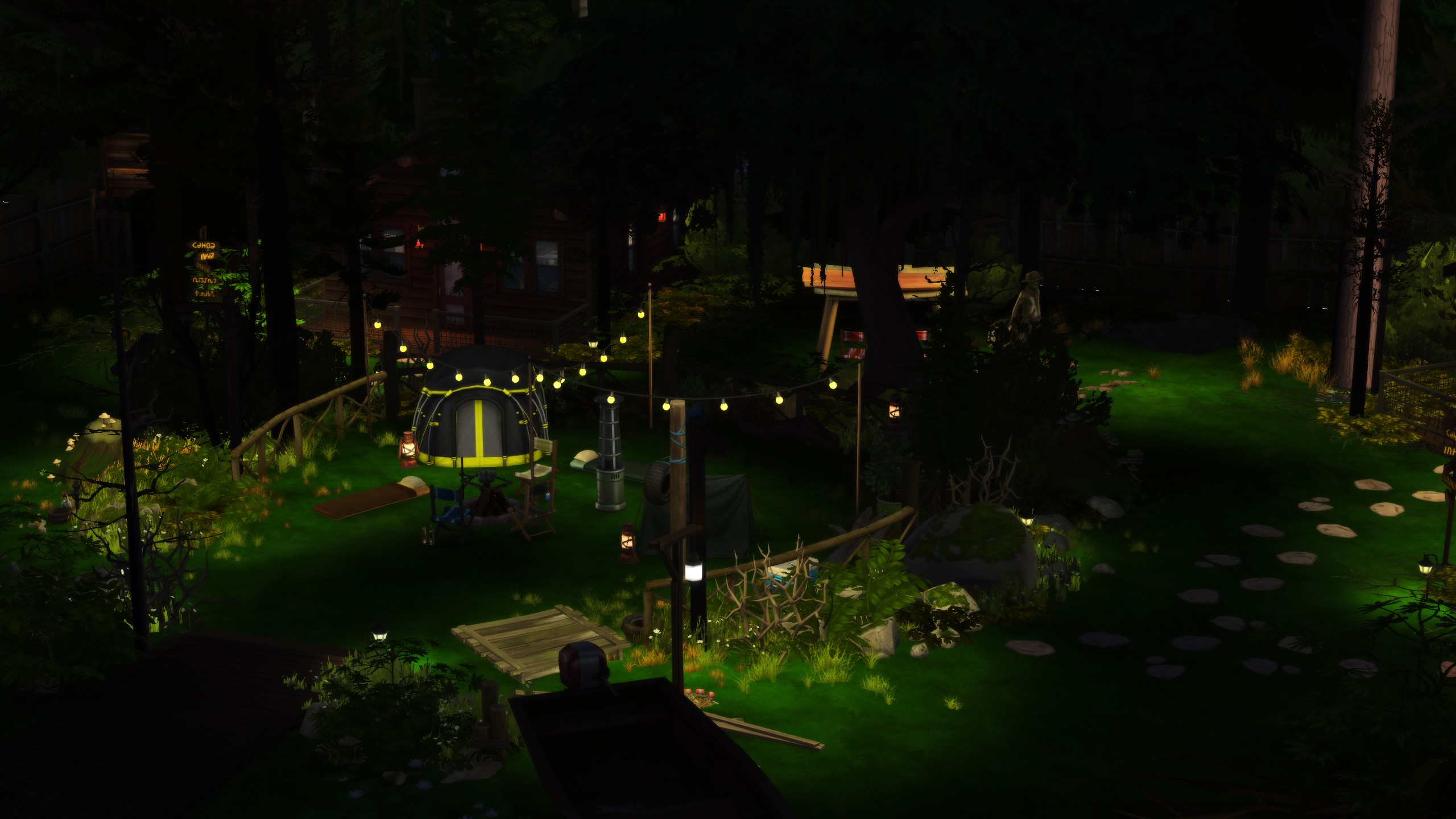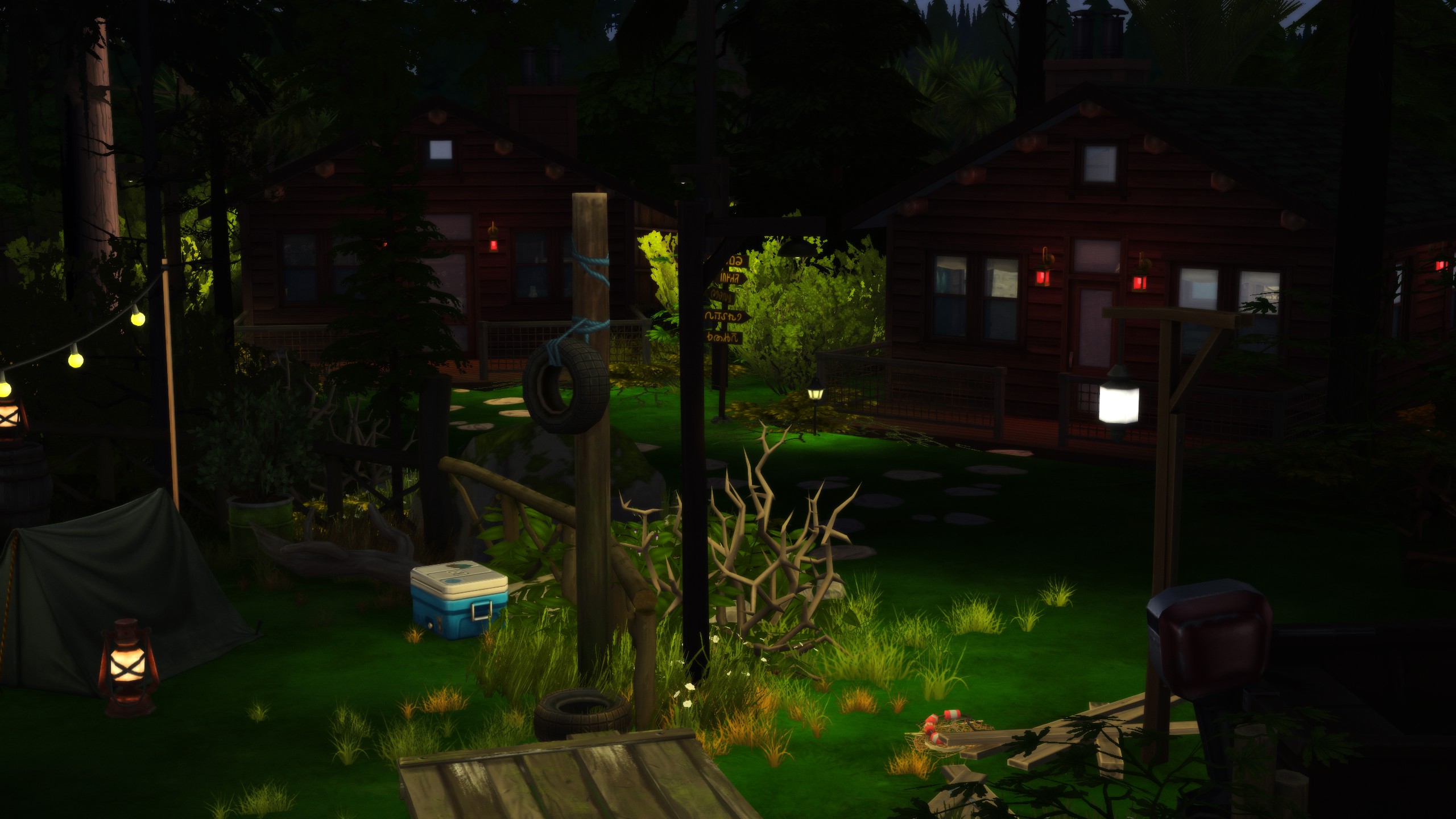 Just in time for the upcoming holiday, stage your sims in a dimly lit camp inspired by popular slasher films. Perfect for a Halloween Party (or Spooky Day!) getaway! Decorative boats, complimentary kayaks, and soft glowing string lights set the mood perfectly!