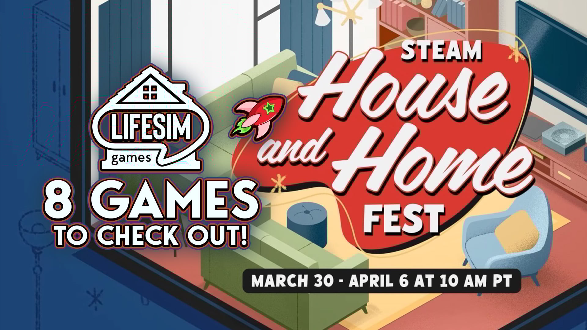 From March 31st, 2026 to April 6th, 2026 Steam is currently hosting it’s House and Home Fest—one of it’s many themed sales. House and Home Fest specifically being centered around games that Some are relaxing room builders with a “cozycute” vibe…and some are horror games set in haunted houses. This list will encompass a variety of games that are more at home within casual vibes of the life simulation genre. Though, of course, if you’re like me and love to get your spook on, I recommend sorting by ‘horror’ on the House and Home Fest page!